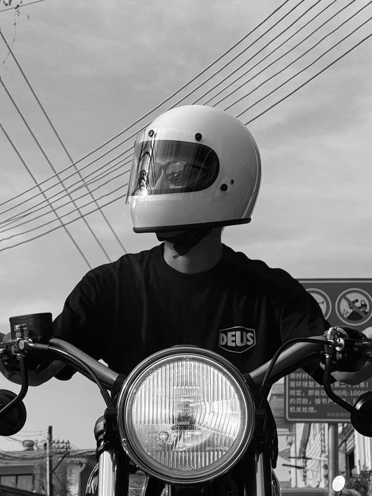 PENGUIN Magellan Cafe Racer Retro Open Face Helmet - DOT Certified - Ivory White