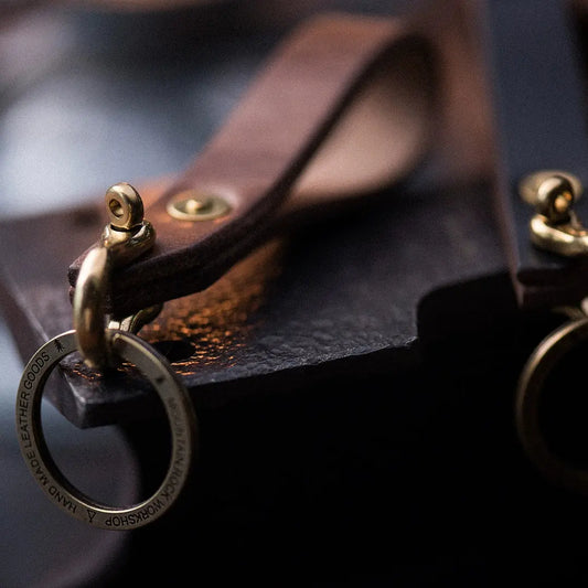 Mountain Rock Handmade Brass and Leather keychain - Brown