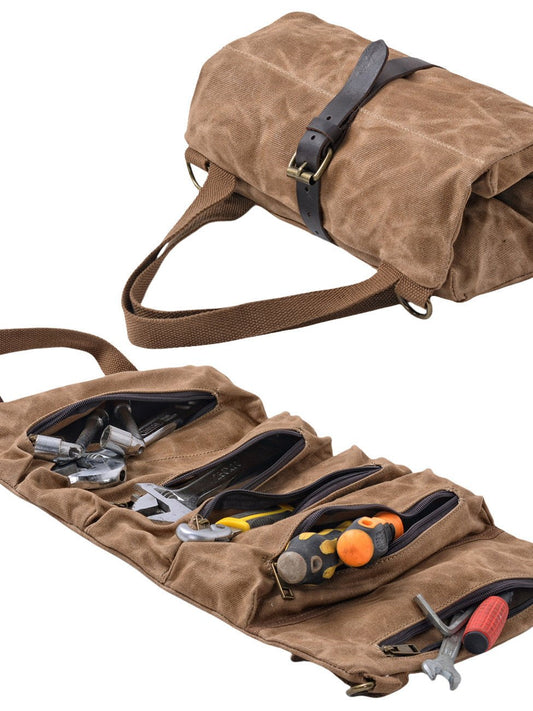 Savile Speed Waxed Cotton Retro Motorcycle Tool Bag Utility Bag - Brown + Khaki