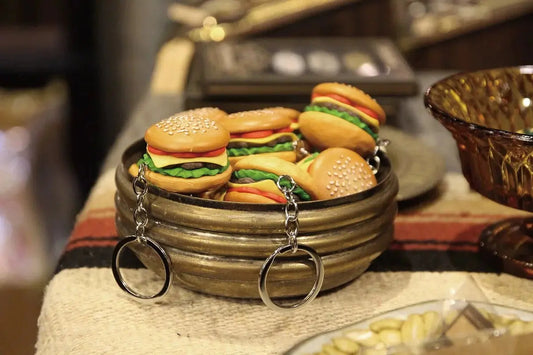 Metalize Hamburger Sandwich Fries Keychain