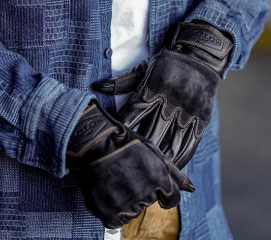 Fogy Garage Ethiopian Sheepskin Kevlar Lined Retro Motorcycle Gloves - Black