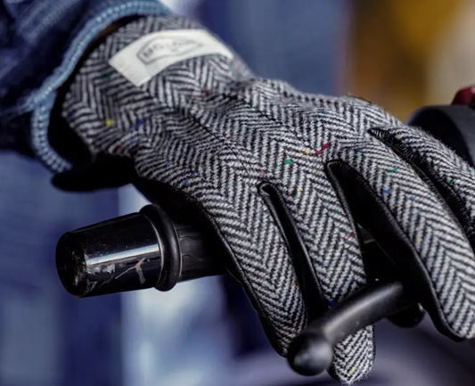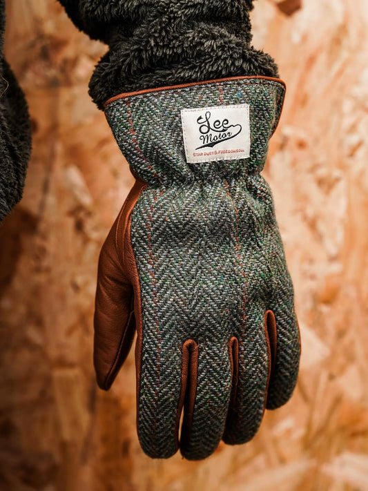 MR MOTOR Maloni Tweed Retro Motorcycle Riding Gloves - Dark Gray Pine