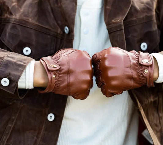 MR MOTOR All-Season - Winter Lambskin Retro Motorcycle Gloves - Populus euphratica