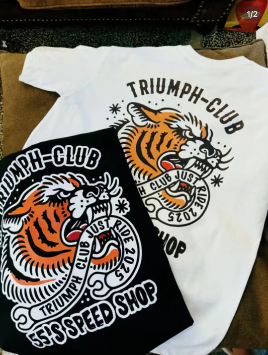 55 Shark Vintage Triumph Tiger Print T-Shirt - Black