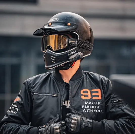 Feture STEVEN CUSTOM Retro Motorcycle Helmet DOT - Bright black