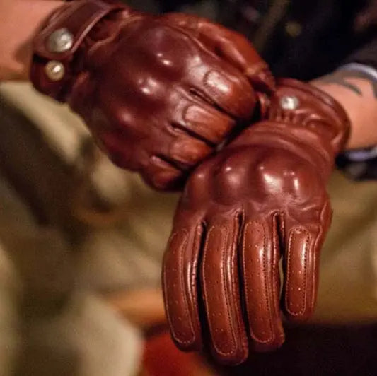 MR MOTOR Lamb Skin Retro Leather Motorcycle Gloves All-season & Fall/Winter - Brown
