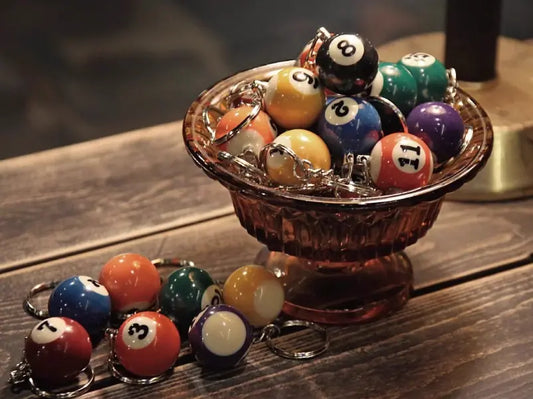 Metalize Billiards Ball Vintage Keychian - Good Luck Clover Charm