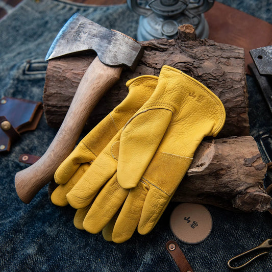 Mountain Rock Cowhide Working Gloves Retro Motorcycle Gloves - With “Mountain Rock” logo
