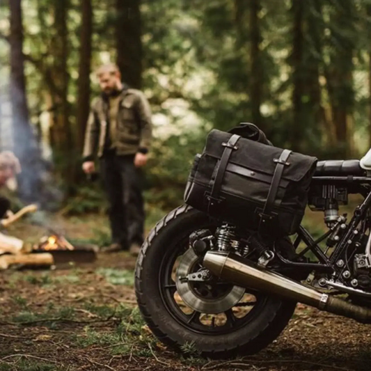 Savile Speed Waxed Canvas Pannier Retro Motorcycle Bag - Black+Black